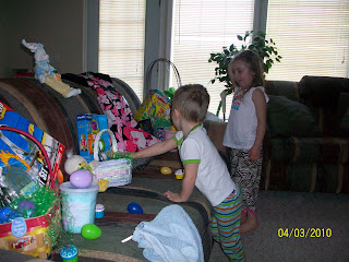 with him while he screamed but yet still manage to get the most eggs. Then on Saturday we went to Shawn and Tiffany's house for a BBQ then let the kids run wild with over 150 eggs!